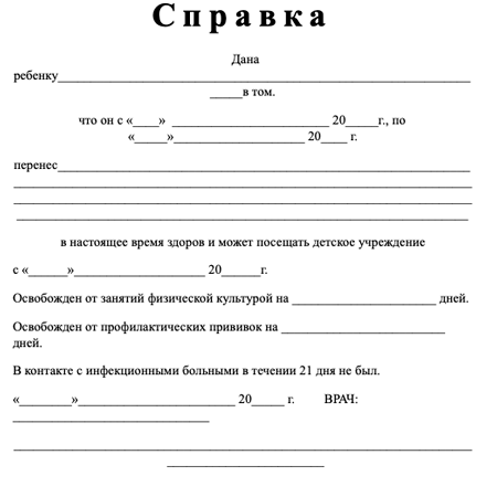 Справка в сад после пропуска или каникул должен быть выполнен на официальном бланке, подлинность его подтверждает врач. Специалист выдает документ только после того, как ребенок пройдет полный курс лечения. Также в справке в детский сад может быть указаны реонлайнендации касательно распорядка дня и физической нагрузки. После выздоровления детям нужно дать время восстановиться и не посещать занятия физкультурой.