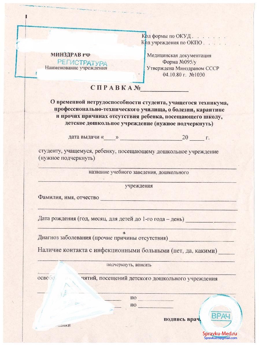Дети-дошкольники могут спокойно пересидеть дома опасный период разгула инфекционных заболеваний, а потом предоставить медицинскую справку 095 у. Школьникам не придется объяснять причины пропуска занятий. А для студентов медицинская справка 095у станет вообще "спасательным кругом" и избавит от исключения. Она поможет оправдать имеющие пропуски и получить допуск к экзаменам. Благодаря медсправке 095 у не придется отрабатывать прогулы, так как пропуски по состоянию здоровья считаются уважительными.