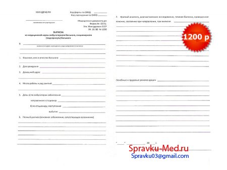 - Стационарная. Полное подробное описание истории болезни. Также предоставляется больницей, в которой проходило лечение.